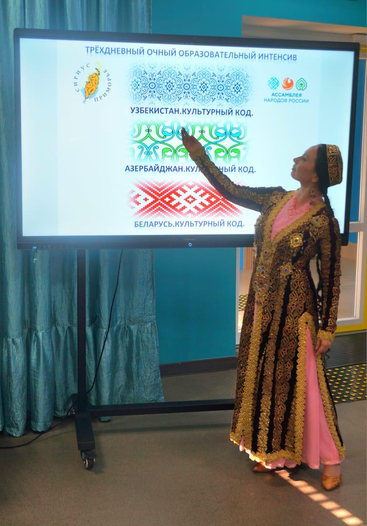 В рамках международной деятельности в региональном центре «Сириус. Приморье» прошёл очный образовательный интенсив (с 24.06 по 26.06) по темам: УЗБЕКИСТАН. КУЛЬТУРНЫЙ КОД.; АЗЕРБАЙДЖАН. КУЛЬТУРНЫЙ КОД.;